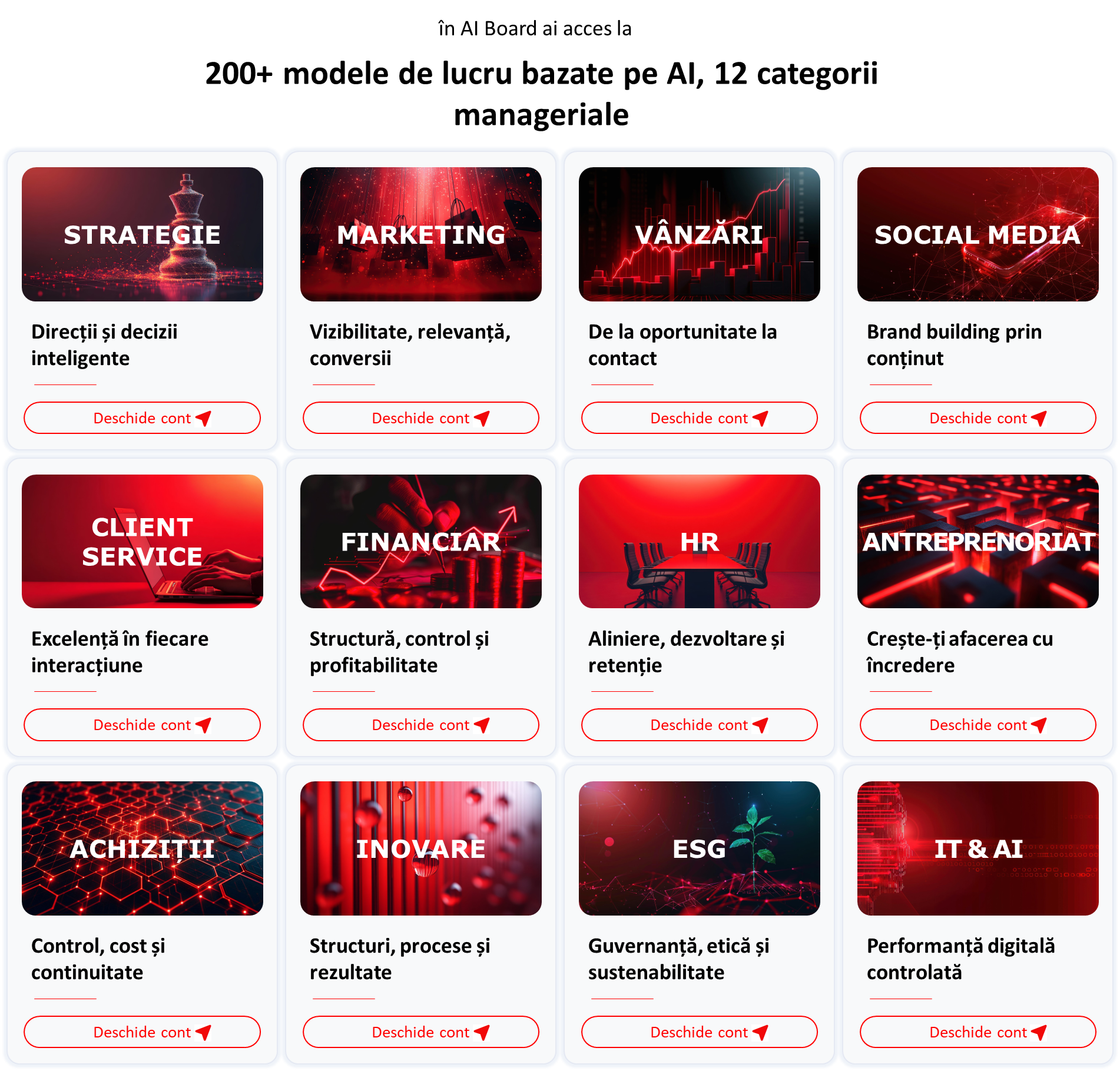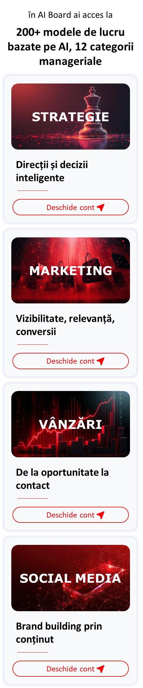 Colaborarea cu AI Board permite organizațiilor românești să accelereze adoptarea AI, să reducă riscurile specifice contextului local și european și să transforme inteligența artificială dintr-o tehnologie promițătoare într-un avantaj competitiv real.